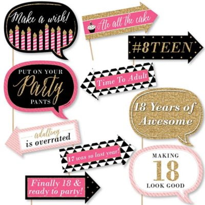 Funny Chic 18th Birthday Pink Black And Gold 18th Birthday Party Photo Booth Props Kit 10 Piece Walmart Com